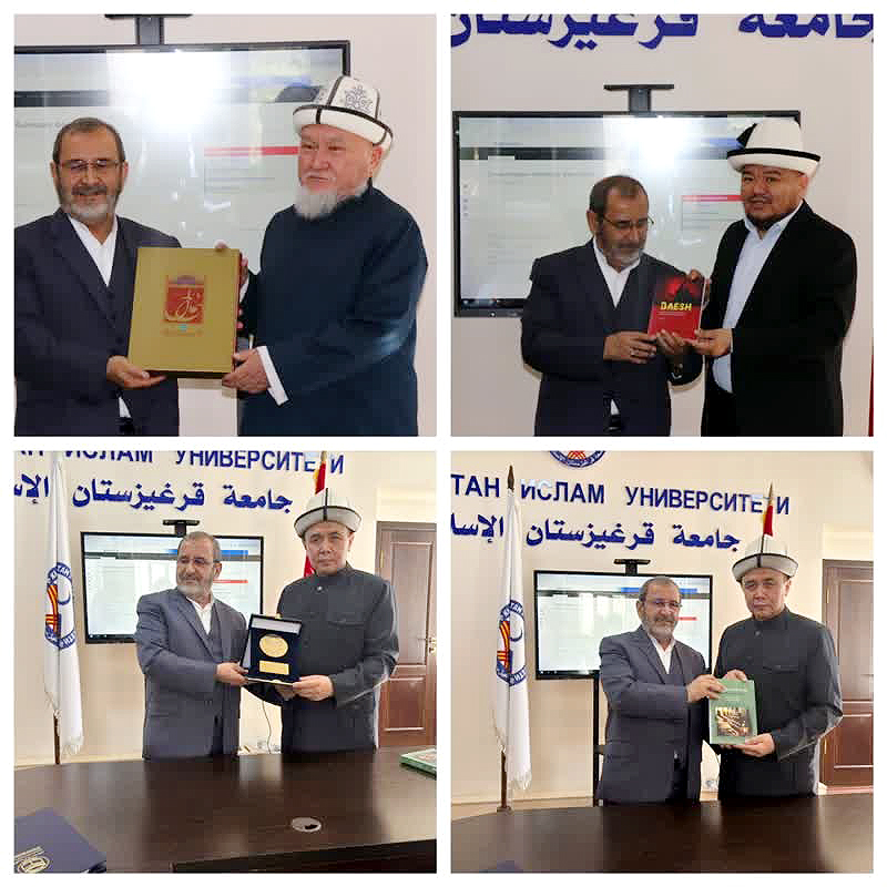 رئیس دانشگاه اسلامی بیشکک ضمن خیرمقدم به رئیس دانشگاه بین‌المللی مذاهب اسلامی و هیئت همراه به تاریخچه فعالیت و جایگاه این دانشگاه در زمینه آموزش‌های دینی و زبان فارسی اشاره کرد.