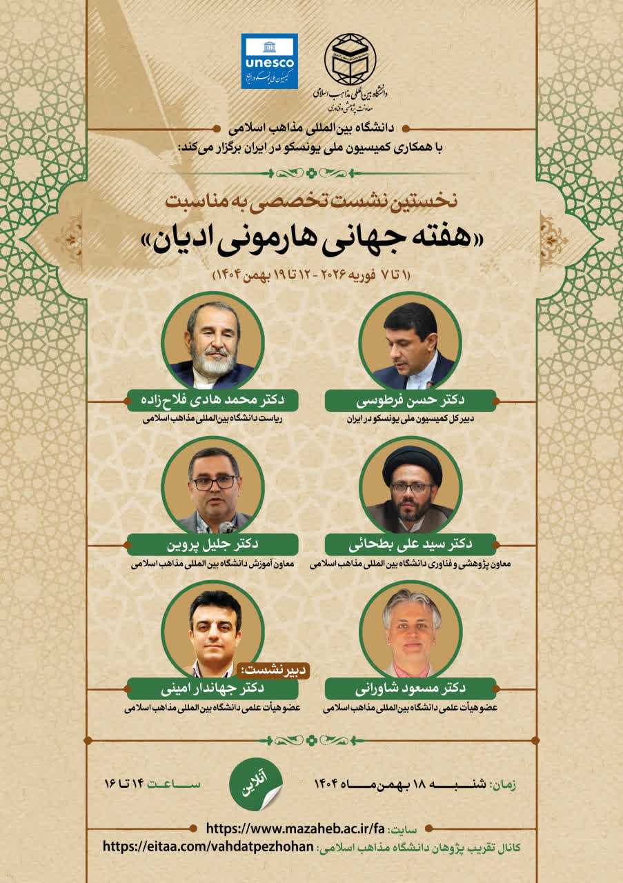 نخستین نشست تخصصی به مناسبت «هفته جهانی هارمونی ادیان» در ایران (1 تا 7 فوریه ۲۰۲۶ - ۱۲ تا ۱۹ بهمن 1404)